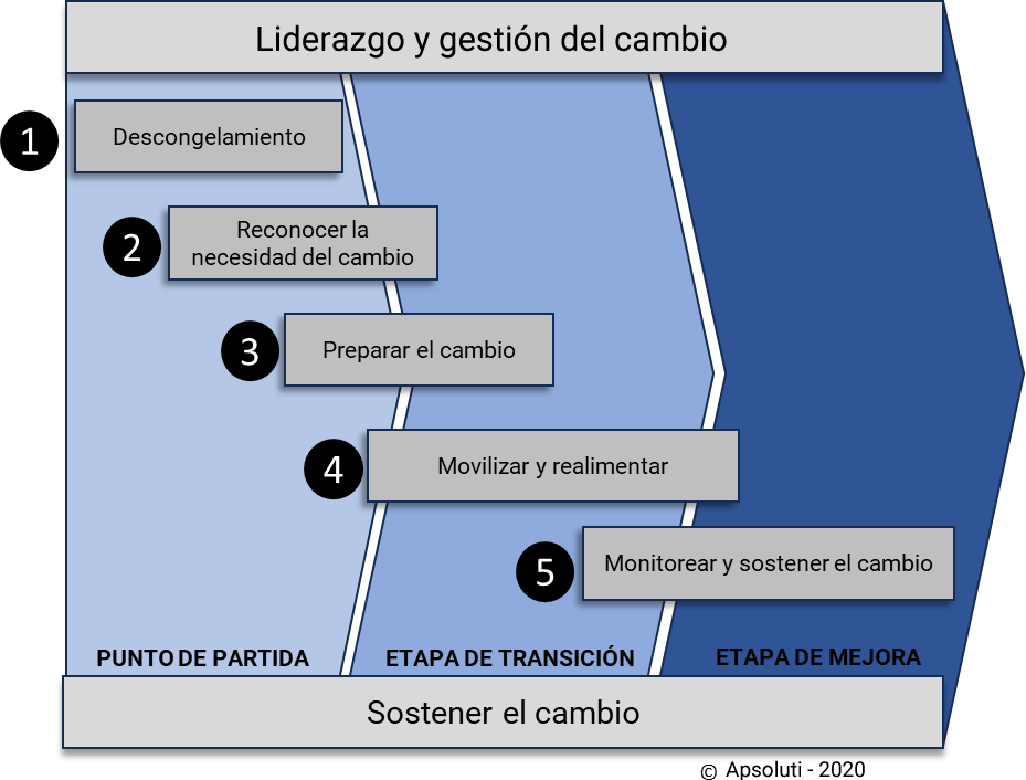 Un proceso de cambio se inicia con un diagnóstico de las características de la cultura y hábitos de trabajo existentes en la industria y la definición de los nuevos comportamientos a desarrollar. La fase de descongelamiento se prepara a partir de la definición de un propósito superior de la dirección que permite alinear y dinamizar el proceso de cambio en los diferentes niveles. El despliegue y comunicación del "propósito" hasta los niveles operacionales es un trabajo crítico para crear el espacio necesario donde pueda progresar el cambio.